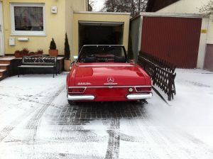 Der SL Pagode 250 ist vor einigen Jahren schon mal Eisgestrahlt worden. Er hatte eine komplette Unterboden Behandlung damals erhalten. Die jetzigen Bilder zeigen das Fahrzeug nachdem einige Jahre gefahren wurde, auch im Winter. So das eine kurze Trockeneis Behandlung mit anschließender Kontrolle des vorhandenen Unterbodenschutzes mit punktueller Nachbearbeitung zum Rostschutz erfolgte.